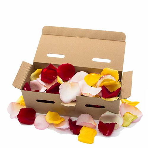 Caja de pétalos de rosa natural en colores variados, ideal para decoración y aromaterapia. Perfecta para bodas, aniversarios o regalos románticos.